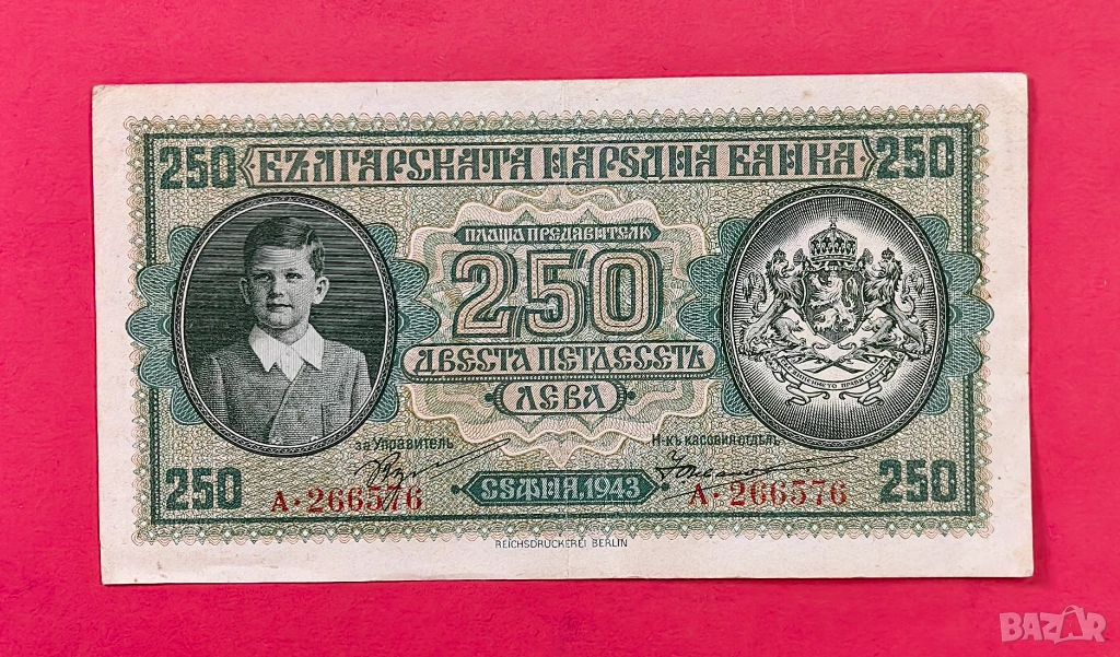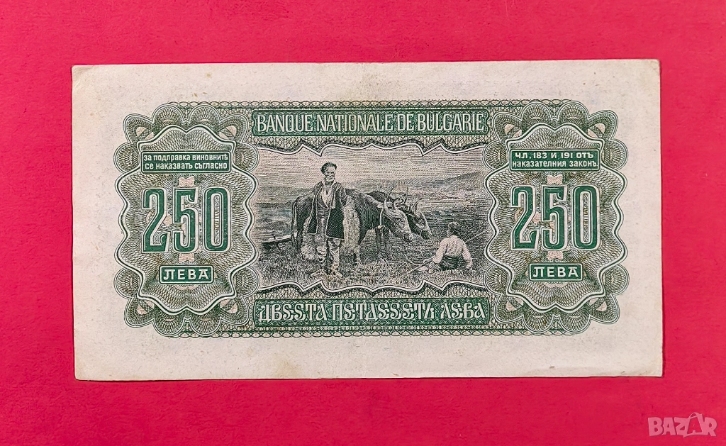 250 лева 1943 година - серия А, снимка 1 - Нумизматика и бонистика - 53356942 250 лева 1943 година - серия А, снимка 2 - Нумизматика и бонистика - 53356942 1/2