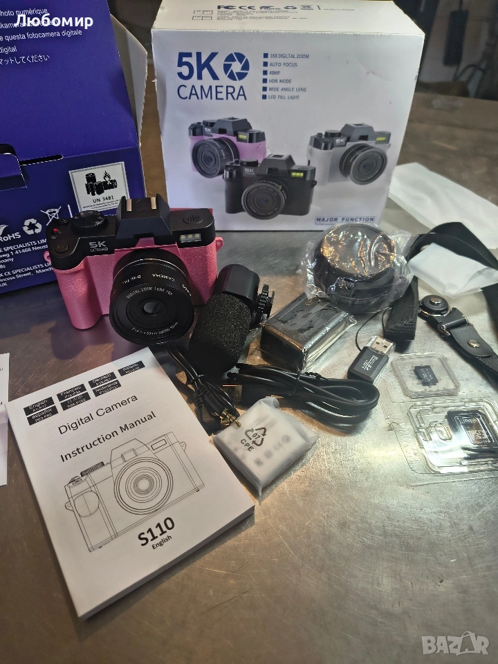 5K цифрова камера, 48MP/60FPS камери за фотография, видеокамера/влог, WiFi управление розов