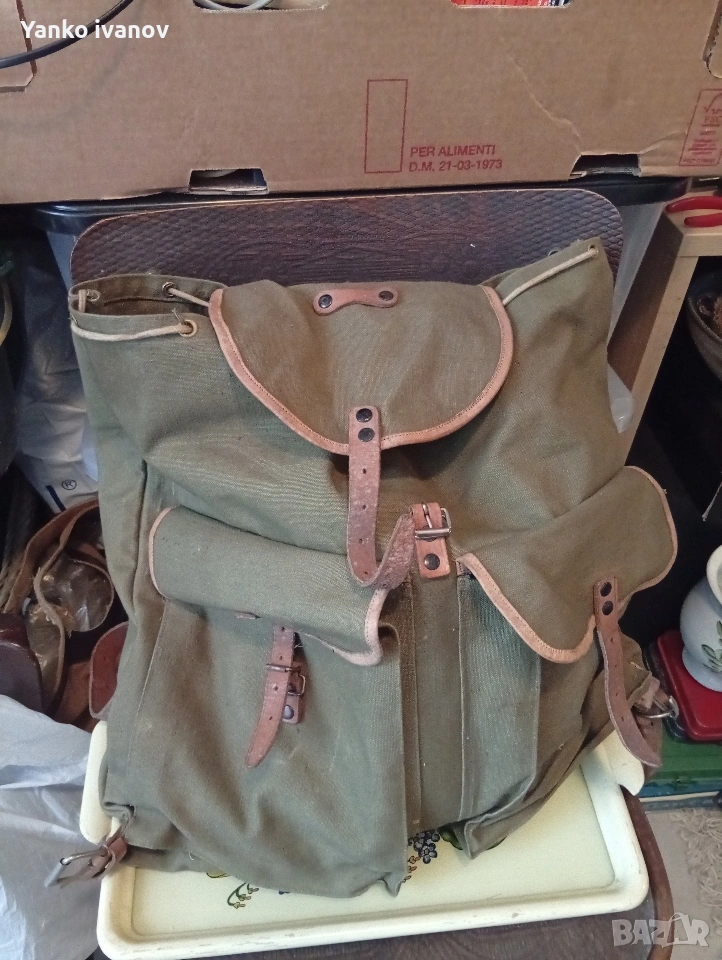 стара брезентова раница, снимка 1 - Екипировка - 53356988 стара брезентова раница, снимка 2 - Екипировка - 53356988 1/2