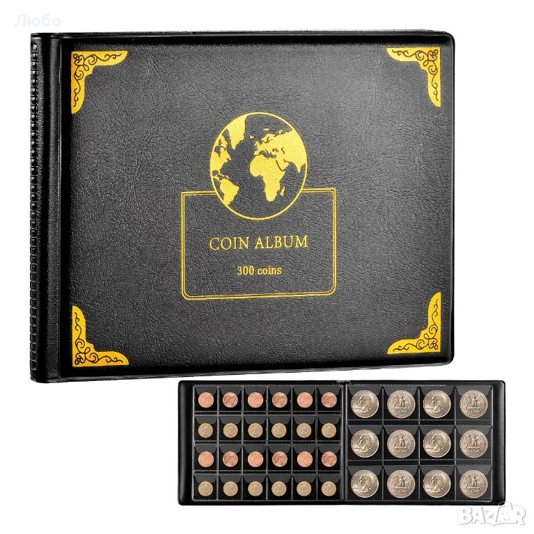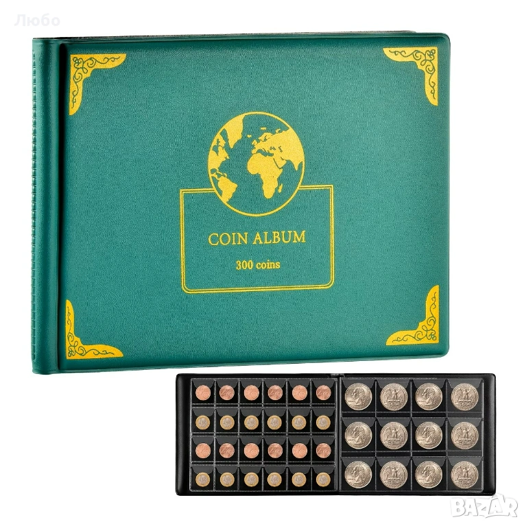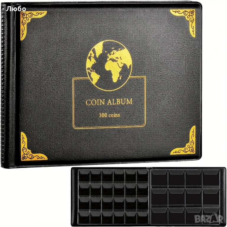 Чисто нов класьор за монети/ албум за съхранение на монети – 300 джоба (30 мм и 38 мм)