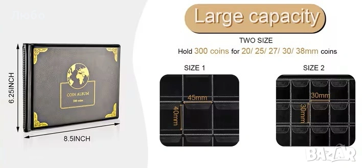 Чисто нов класьор / албум за монети – 300 джоба (30 мм и 38 мм) → Обява 53357021