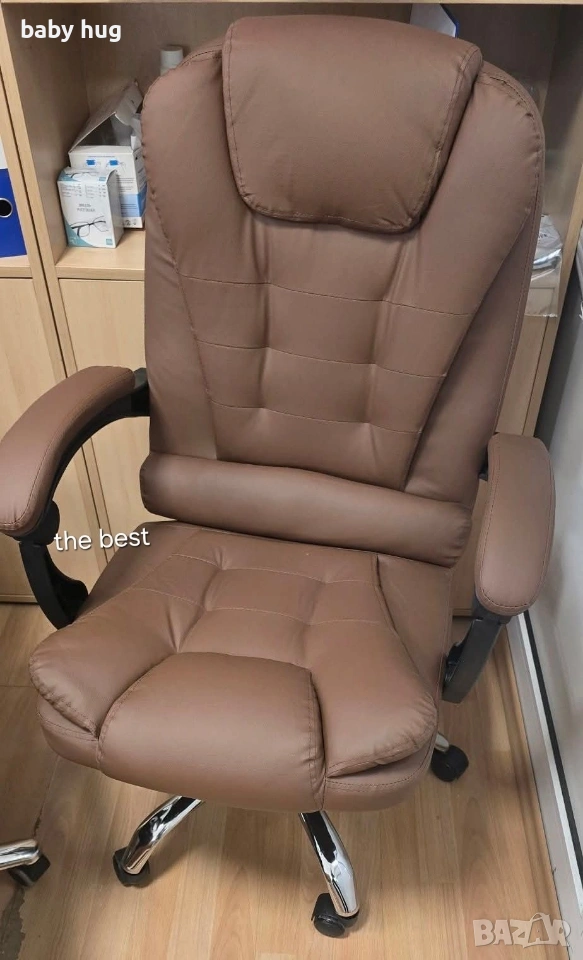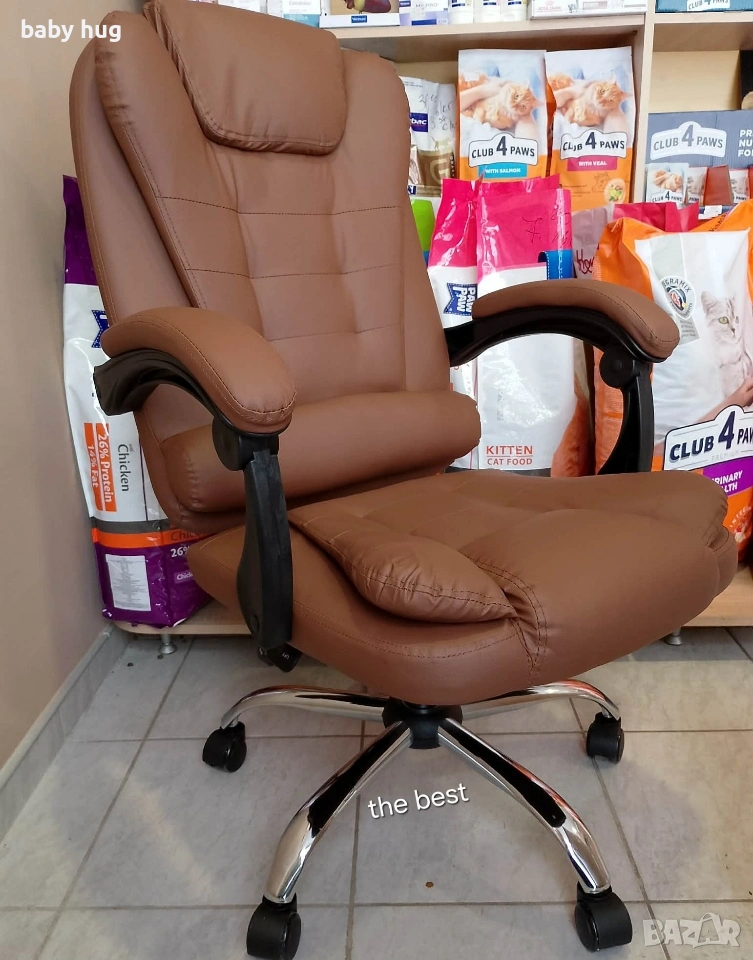 Ергономичен офис стол с лумбална опора от еко кожа – комфорт за дълги часове без болки. Цена 77€