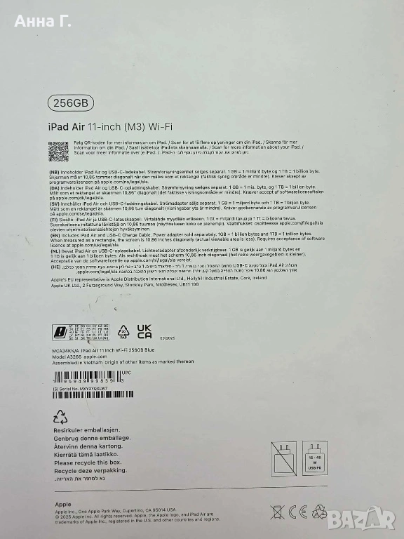 APPLE 11" iPad Air (2025) - 256 GB → Обява 53357167