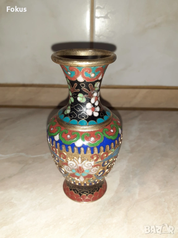Cloisonne Клоазоне Красива малка ваза бронз клетъчен емайл → Обява 53357402