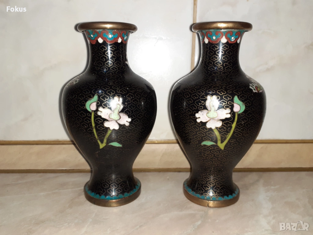 Cloisonne Клоазоне Двойка стари вази бронз клетъчен емайл → Обява 53357436