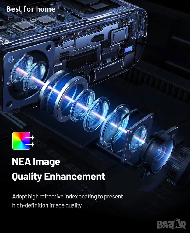 【1080P HD, насладете се на качество като в киносалон】 Малкият проектор поддържа 1080P Full HD резолюция. Той има максимално разстояние на прожектиране до 5 метра, екран с диагонал 200 инча и контрастно съотношение 10000:1, както и най-новия високопрецизен обектив, разработен в Германия, така че можете наистина да усетите 3D технологията, подобни на филмови и телевизионни ефекти. Вграден стерео съраунд високоговорител, проекторът възстановява всеки детайл от звуковия ефект, за да ви позволи да се насладите на приятните звуци в различни сцени.
