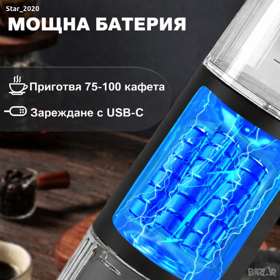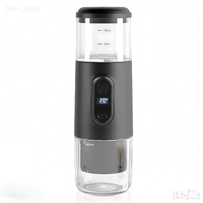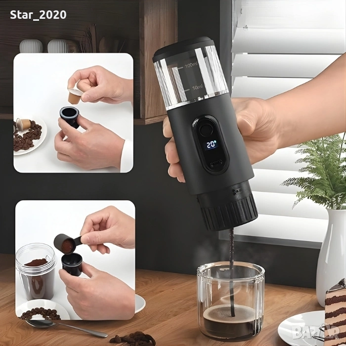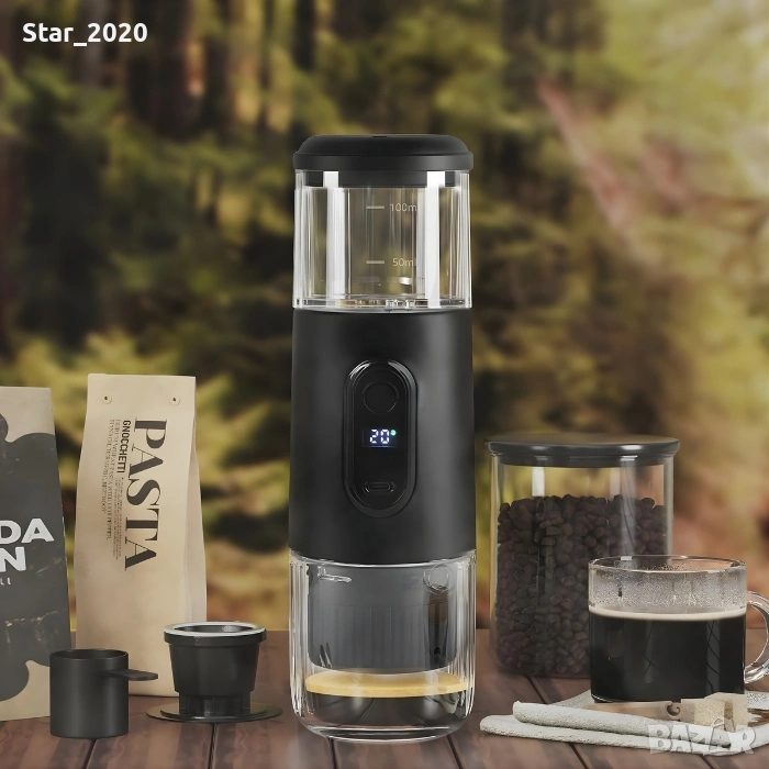 Тази компактна и модерна преносима кафемашина е създадена за любителите на истинското кафе, които искат качество и удобство навсякъде – у дома, в офиса или сред природата.
