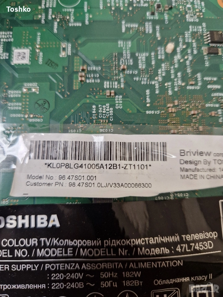 TOSHIBA 47L7453D PE1168 V71A00029501 PSLF226A01A PE1159 6870C-0482A LC470DUK(SG)(K2) → Обява 53357480