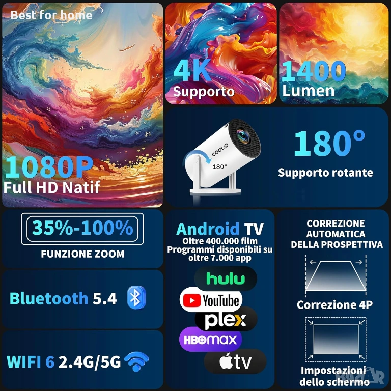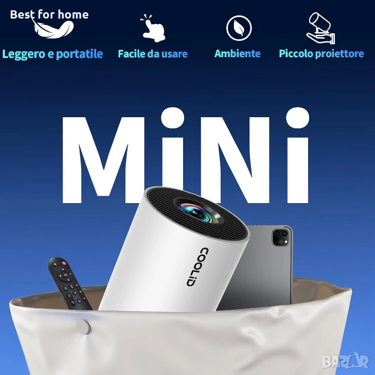 Мини проектор, преносим, 4K 1080P, с 5G WiFi BT 5.4, 180° ротационен
