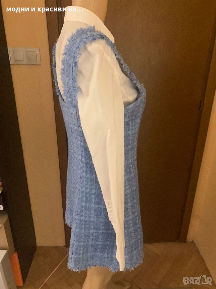 Може да се носи с риза, поло или боди отдолу. Въпрос на вкус и стил