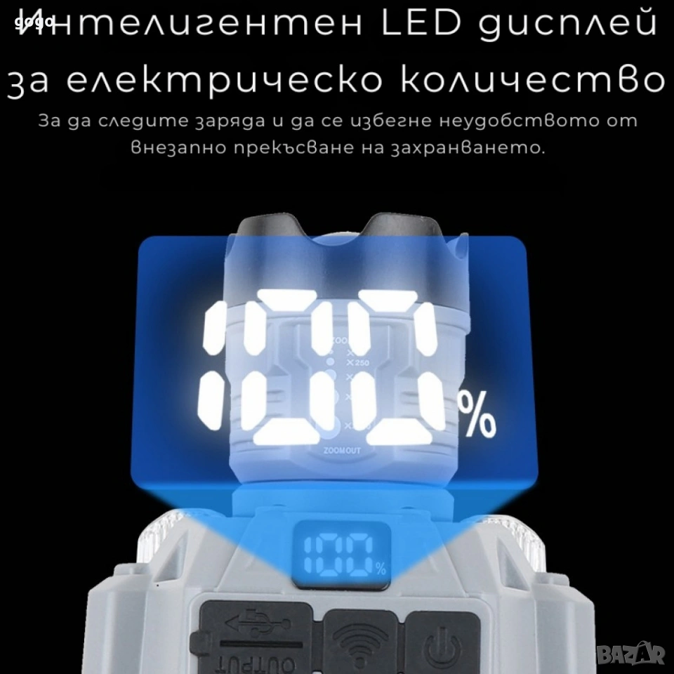 Челник за глава с интелигентно управление с движение и LED дисплей HX-915S Цена: 20 евро Вторият брой: 17 евро Инфрачервен сензор за управление с движение; LED дисплей с точен процент на батерията; Регулируем фокус на светлината (ZOOM IN/OUT); Бързо зареждане с Type-C и USB; Допълнителни ползи: Подаръчна кутия с функция на прожектор; Материал: Удароустойчив ABS корпус + регулируема текстилна лента; Цвят: Сиво-черен; Съвместимост: Подходящ за къмпинг, риболов, строителство, ремонт, електротехници; Захранване: Вградена презареждаща се батерия, зареждане чрез Type-C/USB.