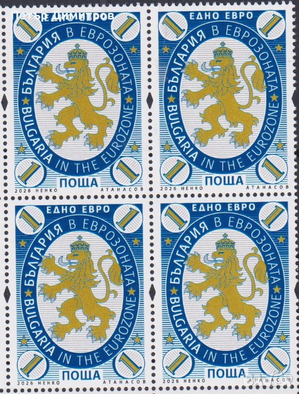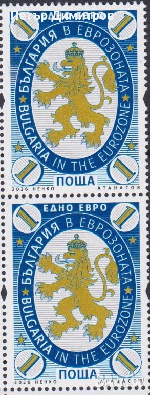 1. Чиста марка България в еврозоната 2026 от България. Цена € 1,50 (сн. 1)