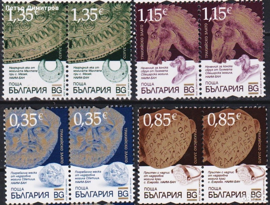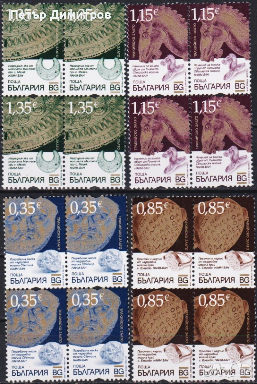 13. Чисти марки (4 х 2) Тракийско злато 2026 от България. Цена € 11,20 (сн. 16) ! имам и вертикални сцепки