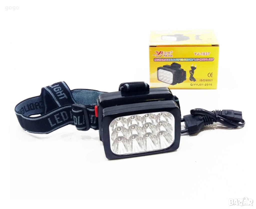 YAJIA Акумулаторна супер ярка 12 LED челна лампа YJ-1837 черна FL109-C Цена: 10 евро Вторият брой: 8 евро Характеристики: Тип: Акумулаторен челник, фенер за глава с 12 LED светодиода. ЛЕД фенера тип свободни ръце е удобен за работа, подходящ за ремонтни дейности, разходки вечер, на къмпинг или при ситуации, в които трябва да сте свободни ръцете си. Модел: YJ-1837; Два режима на светене - силно бяла светлина и слаба бяла светлина; Еластична лента за закрепване към главата; Акумулаторна батерия 1200mAh; Зарежда се на ток; Чупещ ъгъл на фенера до 80 градуса; Издържа на атмосферно влияние Време на светене: До 12 часа; Време за зареждане: До 15 часа; Материал: Пластмаса; Размери: 7,5х5х4 см.; Гаранция: 12 месеца.
