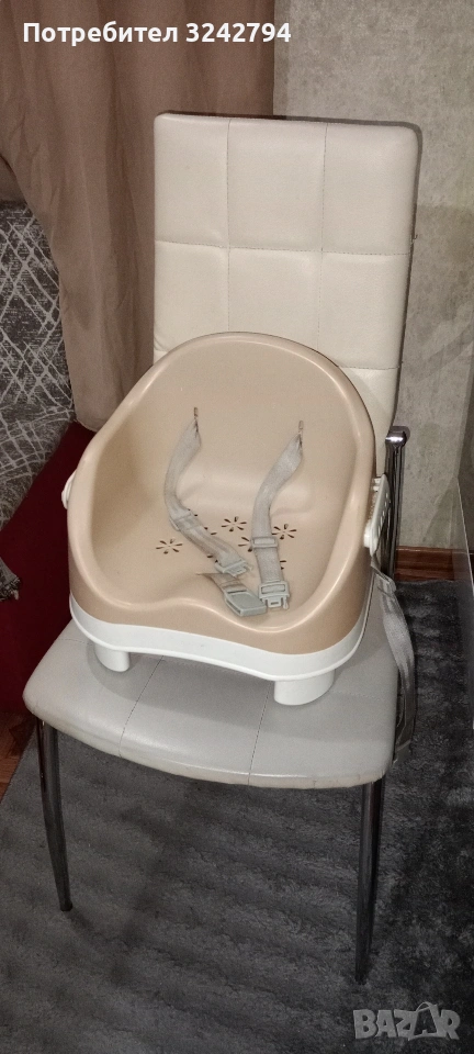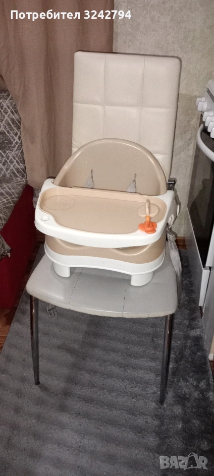 Стол за хранене със колани.Закрепва се със колани за трапезен стол.За повече информация информация пишете или звънете!