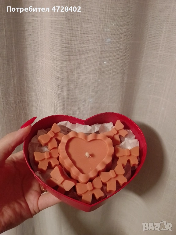 Малка подаръчна кутия във формата на сърце — топъл и стилен подарък с характер: вътре има свещ във формата на сърце в кафеен цвят с аромат на борова гора и сочен мандарин, създаващ усещане за свежест и уют, както и ароматни сашета във формата на нежни панделки, които изпълват пространството с фин аромат и настроение на грижа — поръчайте сега и подарете емоции, които ще се запомнят 🤍