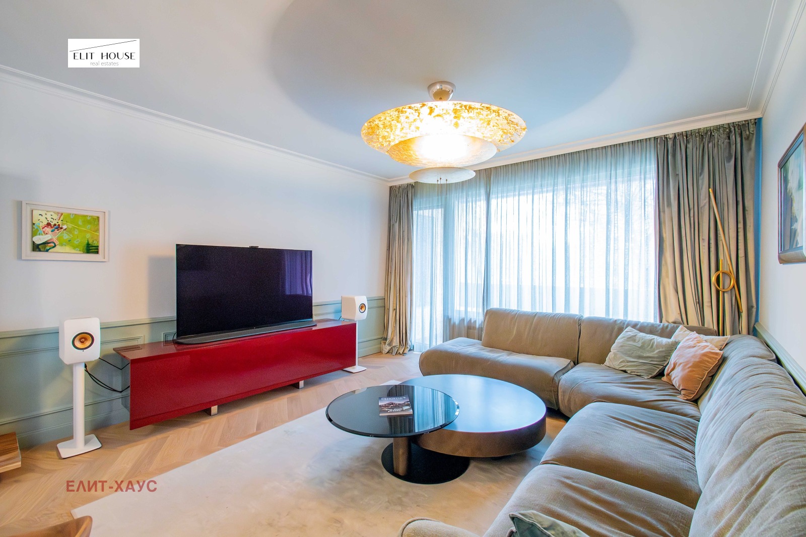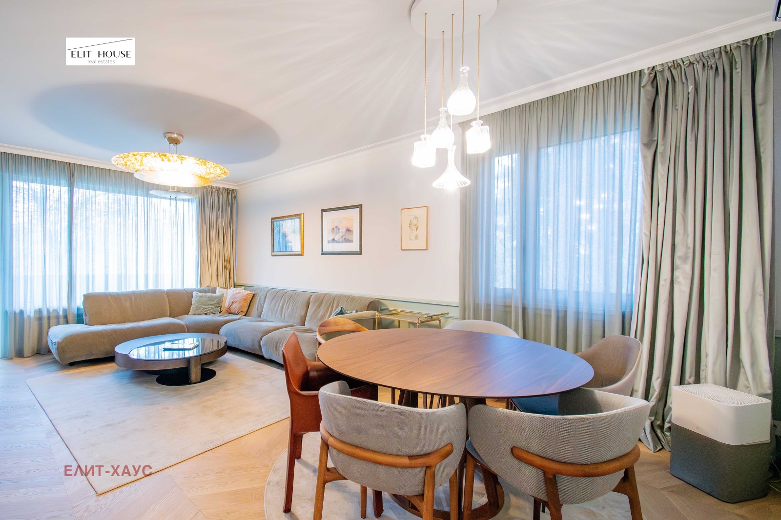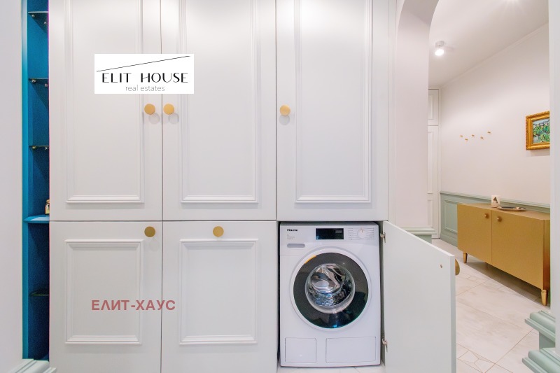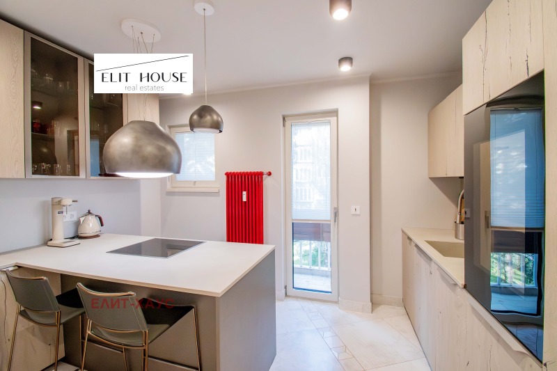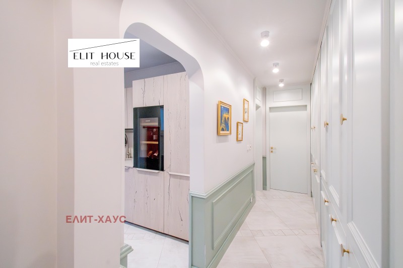 Жилището е изпипано до най малкия детайл, обзавеждането е на водещи италиянски марки, под Шеврон от естествен дъб, камък, мека мебел Едра, вградена кухня с електроуреди Миле, включително и вино охладител, дизайнерска баня с мивки и плот от Кориан, множество вградени гардероби, мокро помещение, две красиви тераси тип Лоджия;