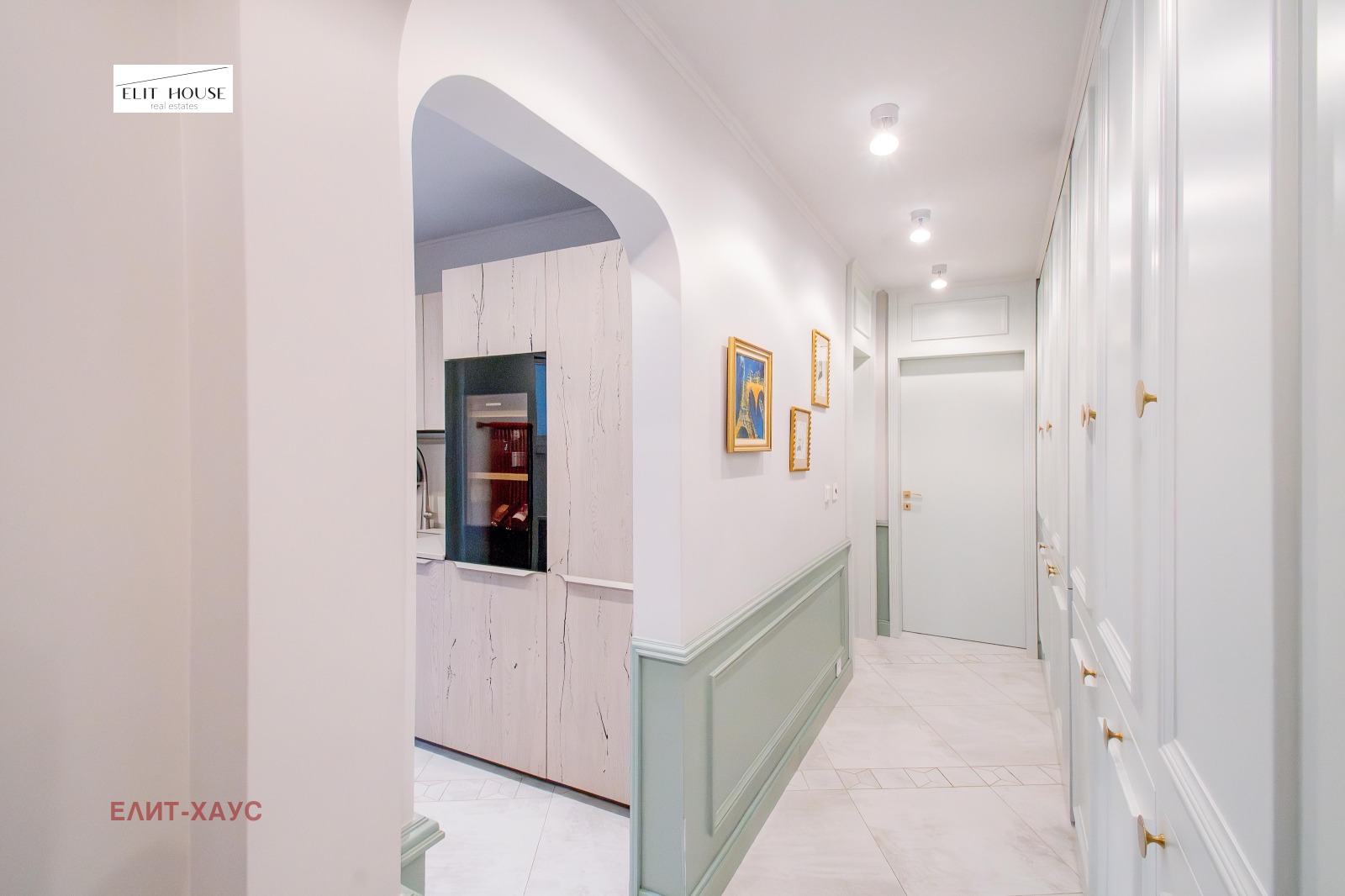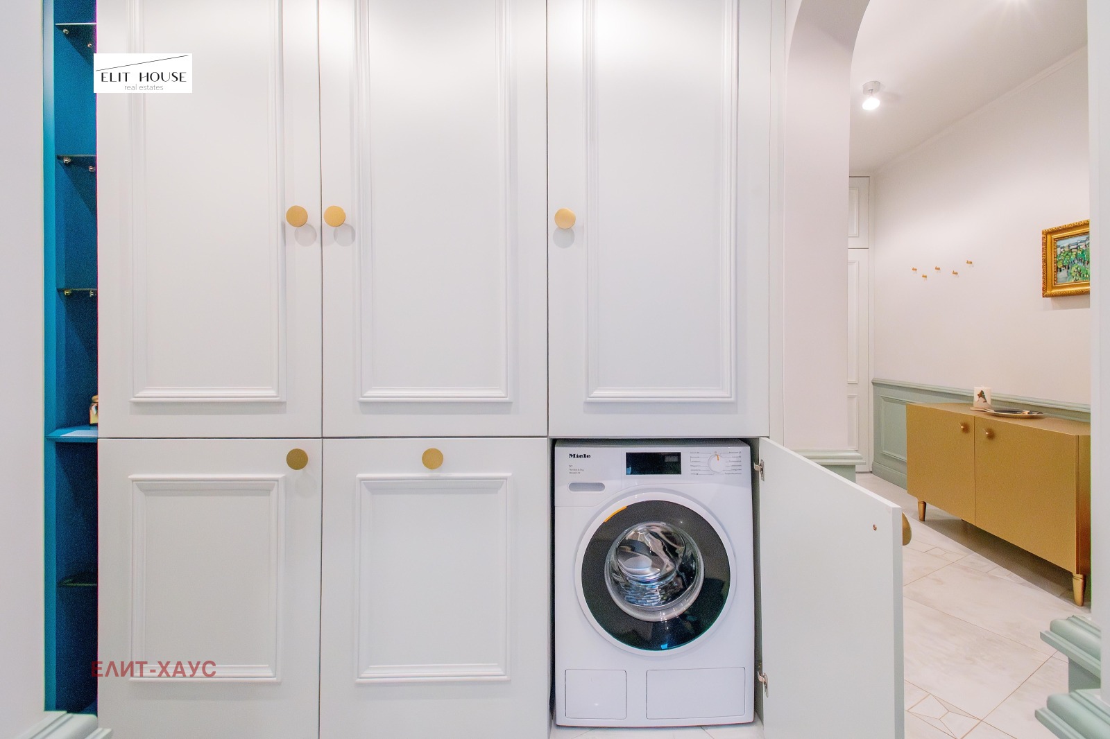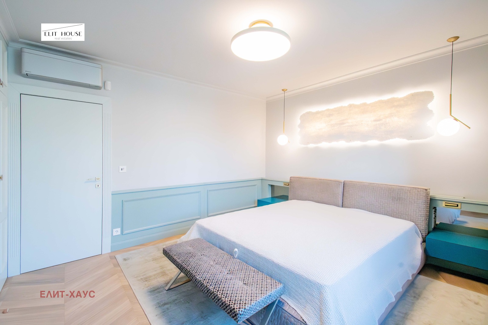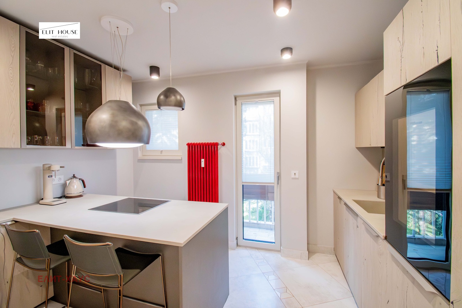 Жилището е изпипано до най малкия детайл, обзавеждането е на водещи италиянски марки, под Шеврон от естествен дъб, камък, мека мебел Едра, вградена кухня с електроуреди Миле, включително и вино охладител, дизайнерска баня с мивки и плот от Кориан, множество вградени гардероби, мокро помещение, две красиви тераси тип Лоджия;