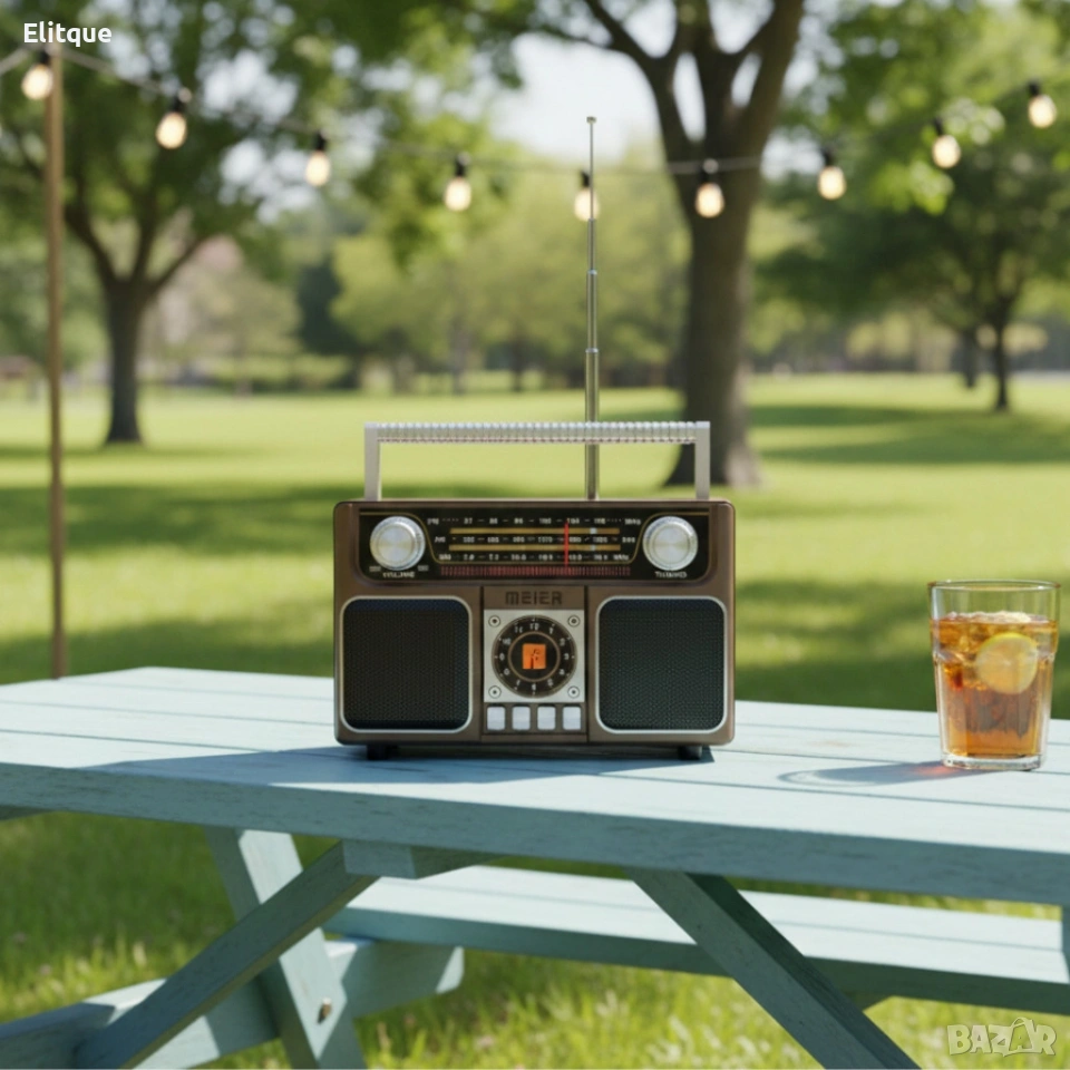 соларно радио MEIER MD-1306BT-S - Bluetooth, FM радио, МP3 плеър, USB и SD card Кратък и ясен списък с ключови параметри, които ще ви дадат реална представа какво получавате: Тип: 3-лентово радио (AM/FM/SW) Bluetooth: Да (версия 5.3) Входове: USB, SD/TF слот, AUX Възпроизвеждане: MP3 файлове от USB/SD/TF Захранване: сменяема акумулаторна батерия 18650 (1200 mAh), DC 5V Високоговорители: вградени стерео говорители Антена: телескопична външна антена Размери: приблизително 19.5 x 13 x 7 см Цветове: черен, кафяв
