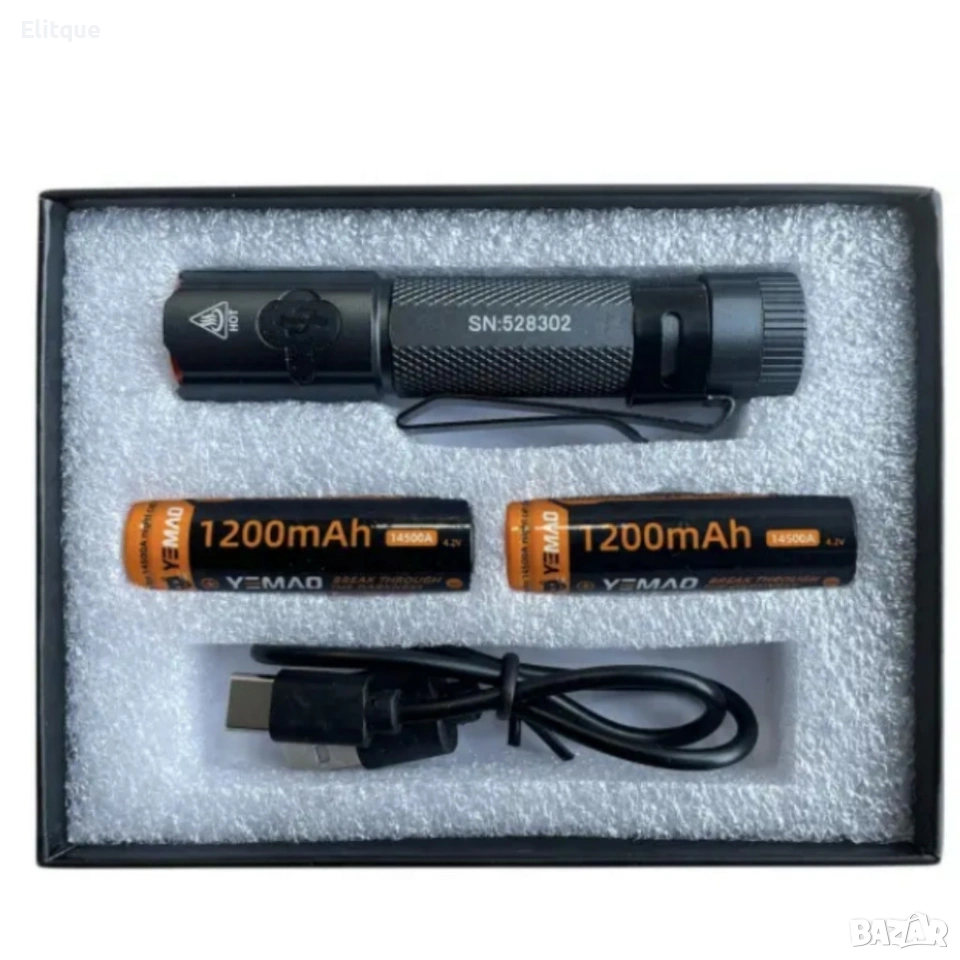 Технически характеристики на Фенер YEMAO YM-M52 – компактен, супер ярък, с магнит и Type-C зареждане Кратък и точен списък с ключови спецификации, които ще ви помогнат да прецените продукта: Модел: YEMAO YM-M52 Яркост: до 1500 лумена Обхват: до 200 метра Материал: алуминиева сплав с анодирано покритие Захранване: 2 × акумулатор 14500 (2 × 1200 mAh) – включени Режими: силен / среден / мигащ / SOS Зареждане: USB Type-C Допълнително: силен магнит, метален клипс, енергоспестяващ режим