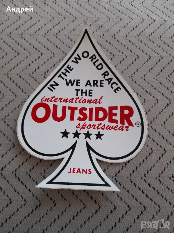 Стикер Outsider, снимка 1 - Други ценни предмети - 53358136 Стикер Outsider, снимка 2 - Други ценни предмети - 53358136 Стикер Outsider, снимка 3 - Други ценни предмети - 53358136 1/3