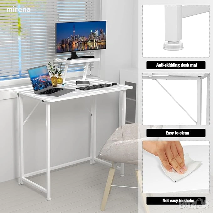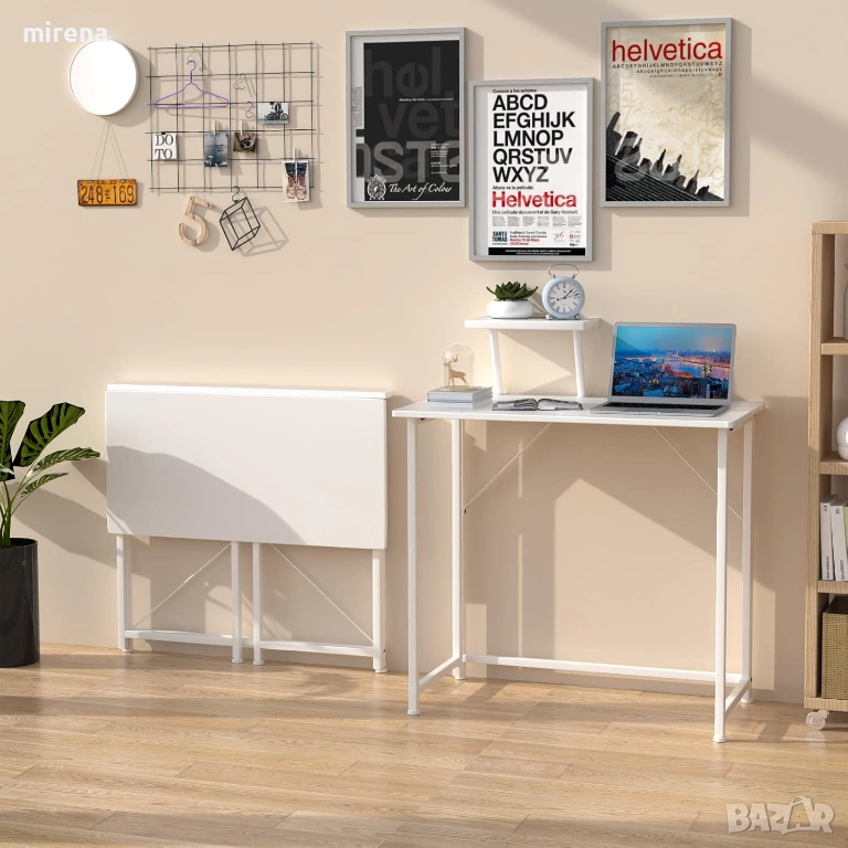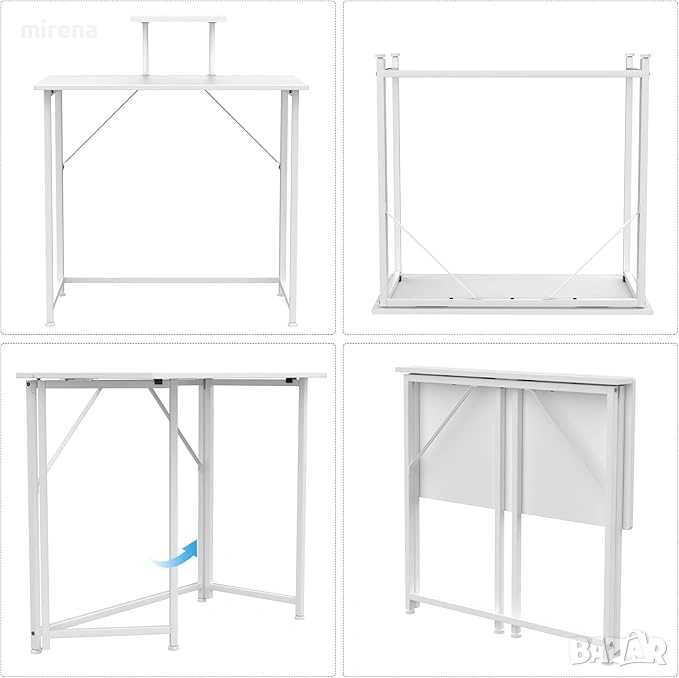 Спестяваща място: красива комбинация от модерен минималистичен дизайн и прецизна изработка. Размери в разгънато състояние: 80 x 45 x 75 см. Сгънато: 80 x 8,5 x 75 см. Преносимата сгъваема работна маса може да се разгъне, когато имате нужда от нея, и да се сгъне, когато не се използва. Може да се постави на стената, под леглото, зад врата или в ъгъла и не заема много място.