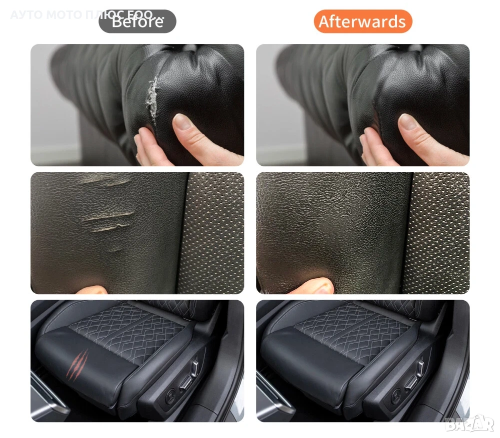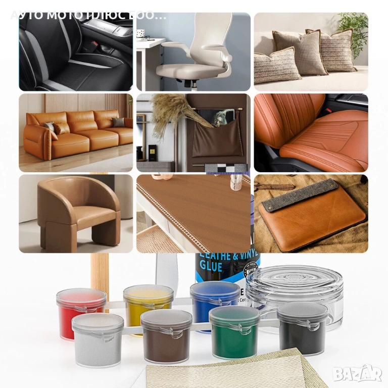 Приложения: Комплектът може да се използва за автомобилни и лодкови тапицерии, мебели (дивани, кресла), багаж, якета, обувки и други изделия от кожа или винил.