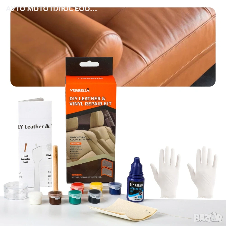 Комплект за ремонт и възстановяване на кожа и винил Visbella - 7 цвята боя.