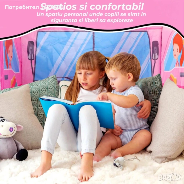 Тази Pop up палатка за момичета се отличава с изключително лесен монтаж, тъй като се разгъва сама за секунди. Моделът е изработен от олекотена, но много здрава полиестерна тъкан, която издържа на активни игри както в затворени помещения, така и на открито. Компактните размери и лесното сгъване позволяват палатката да се прибере бързо, когато не се използва.
