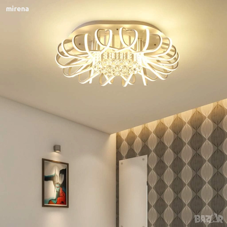 ЛЕД LED димируема таванна лампа модерна кристална полилей дистанционно