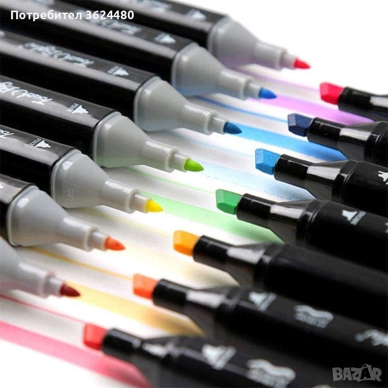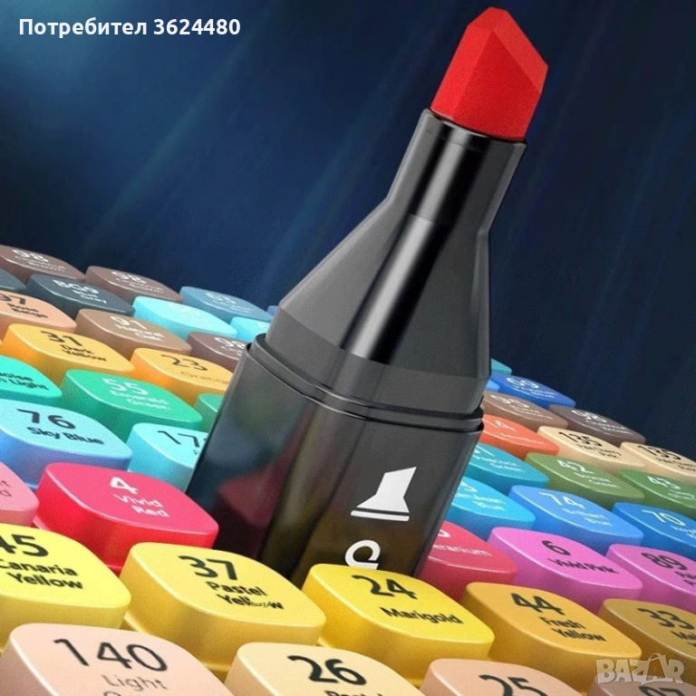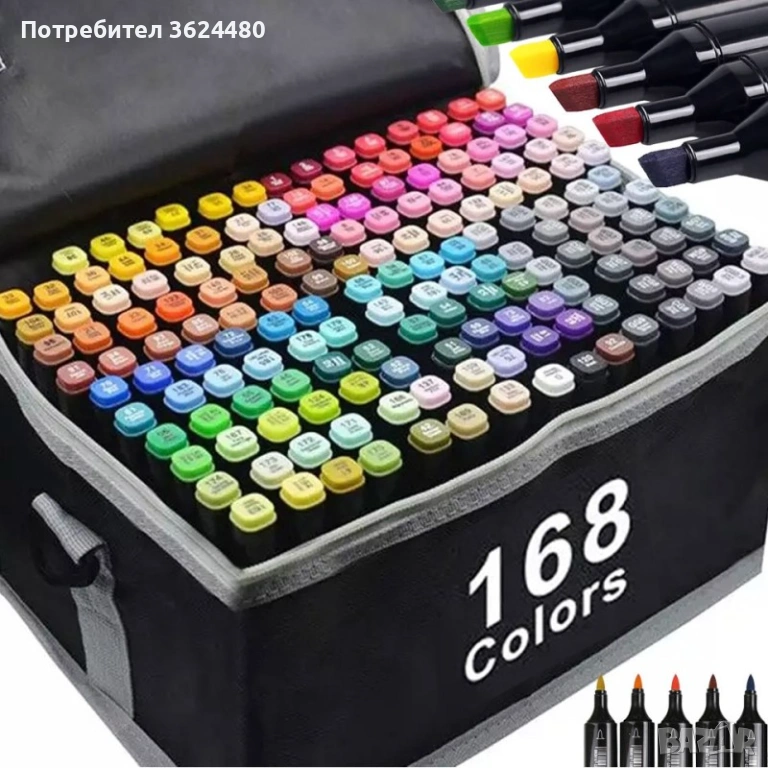 Детайлни спецификации и съдържание на продукта Пакетът съдържа 168 индивидуални маркера. Видът на туша е алкохолен, нетоксичен и изсъхва мигновено след нанасяне. Върховете са два вида, включващи фин писец за линии и широк ъглов писец за оцветяване. Всяка капачка има ясна номерация и цветен маркер за бърза ориентация в палитрата. В съдържанието ще откриете 168 броя алкохолни маркера заедно с 1 брой черна чанта с цип за организирано подреждане.
