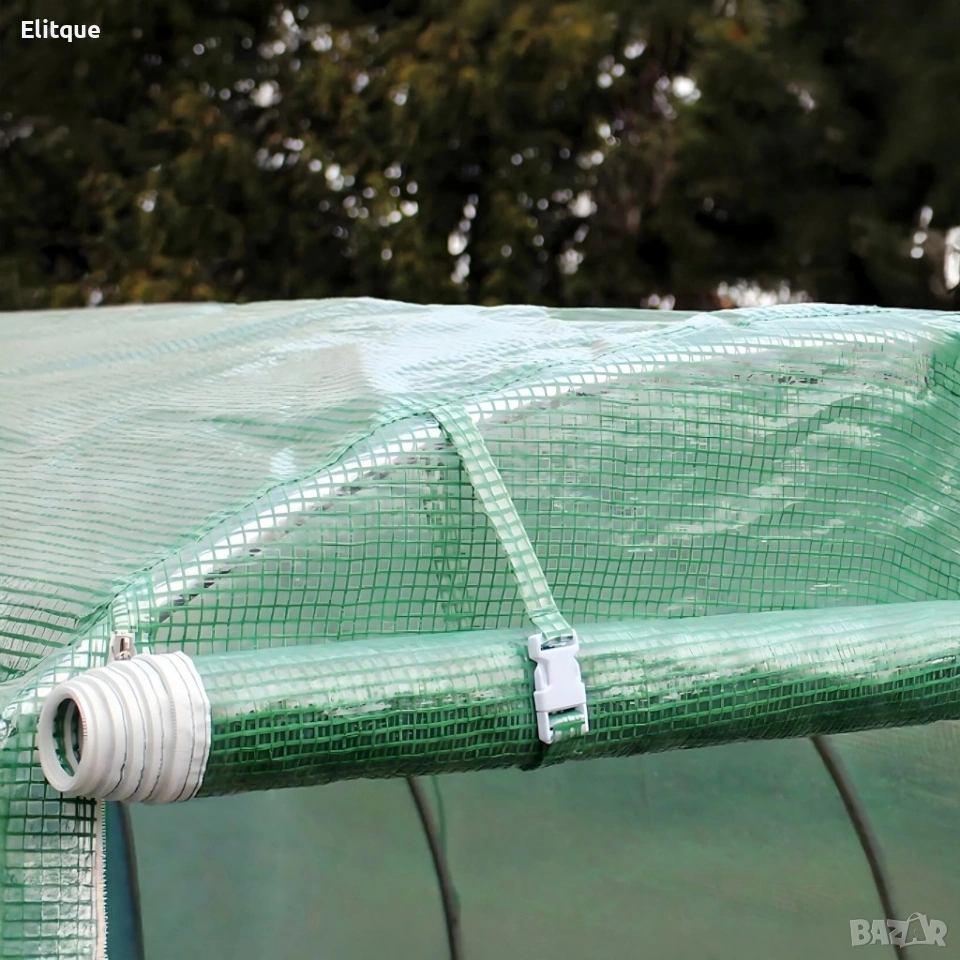 Размери: 3 x 2 x 2 м (ширина x височина x дълбочина) Площ: 6 м² Материал: Подсилено UV-устойчиво PE фолио с PP мрежа Вход: Врати с цип за лесен достъп Прозорци: 6 прозореца с мрежи против комари Тегло (прибл.): леко и удобно за транспортиране (прибл. 15 кг за цялата конструкция при комплект) Съвместимост: Предназначено като резервно покритие — рамката не е включена