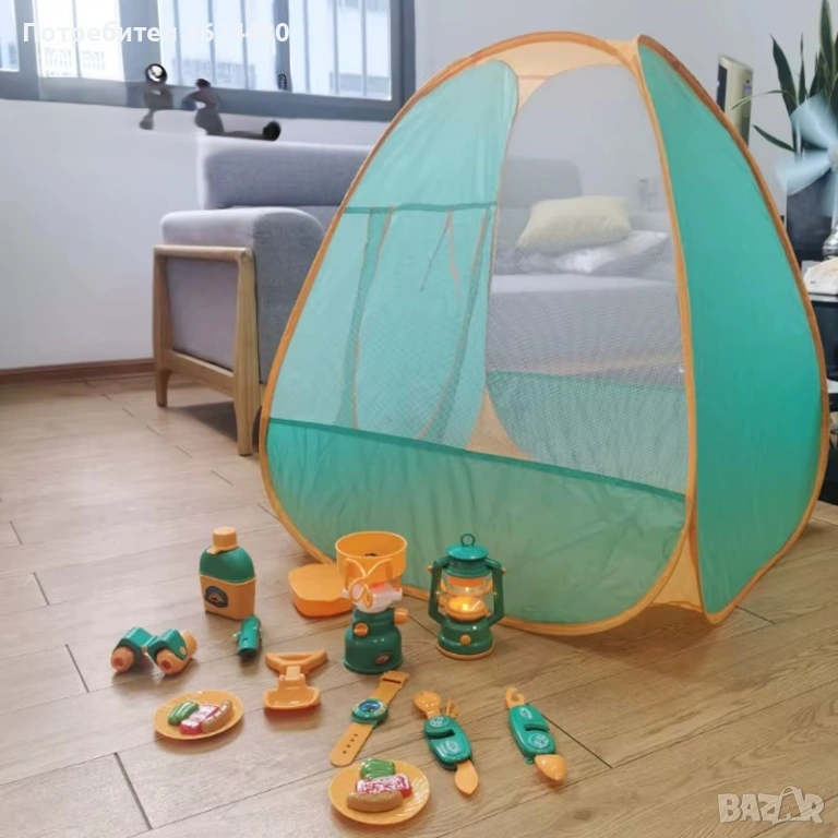 Оборудвайте своя малък изследовател с този голям къмпинг комплект 19 части, идеален за учене чрез игра. Основният елемент е Pop-up палатката, която създава уютно място за приключения на закрито или на открито.