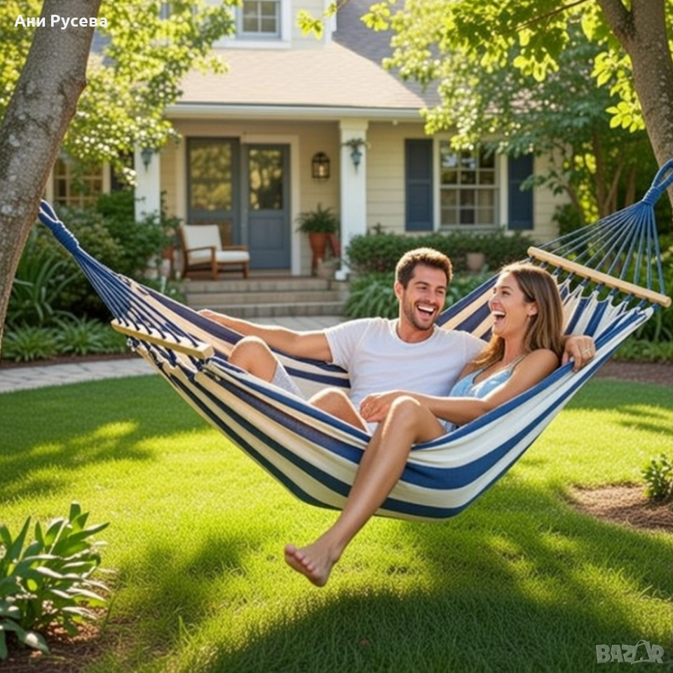 Хамак XXL с възглавница и чанта — максимален комфорт до 250 кг за релакс навън → Обява 53358893
