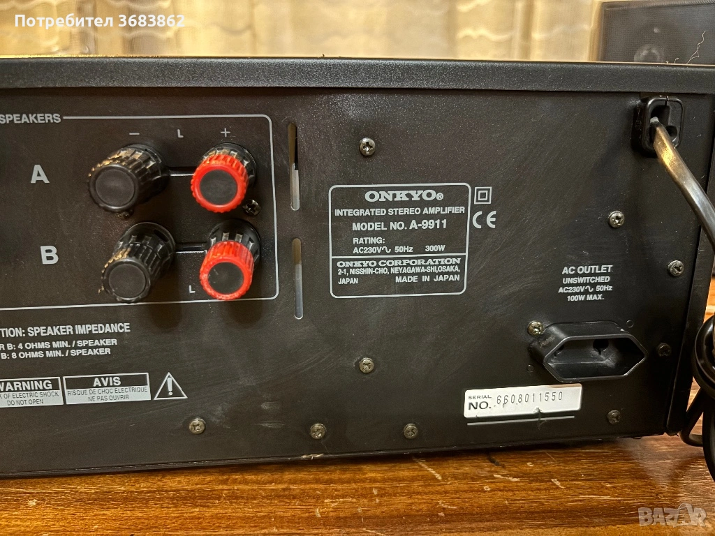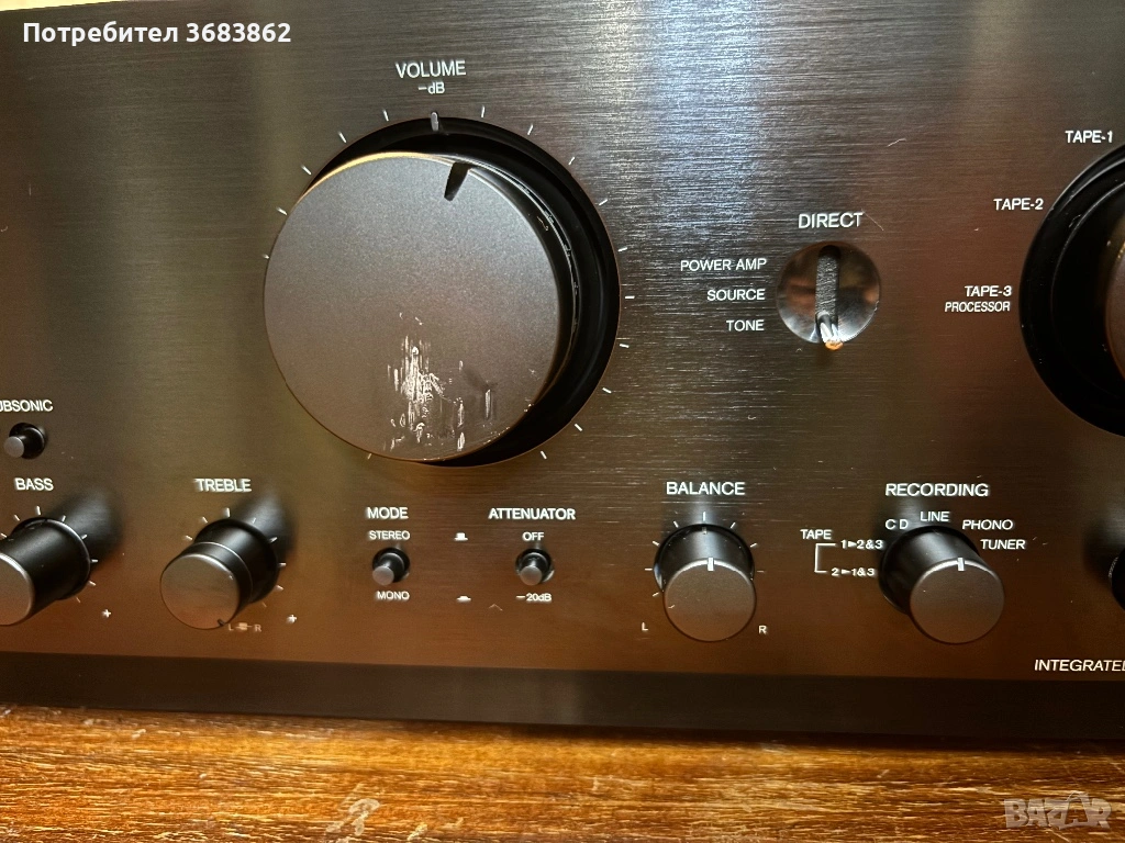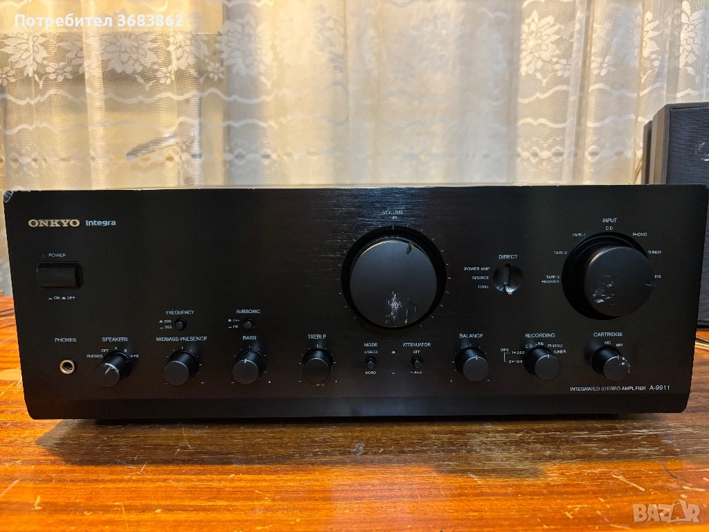 ONKYO Integra A-9911 в лошо визуално състояние. Работи само левият канал.