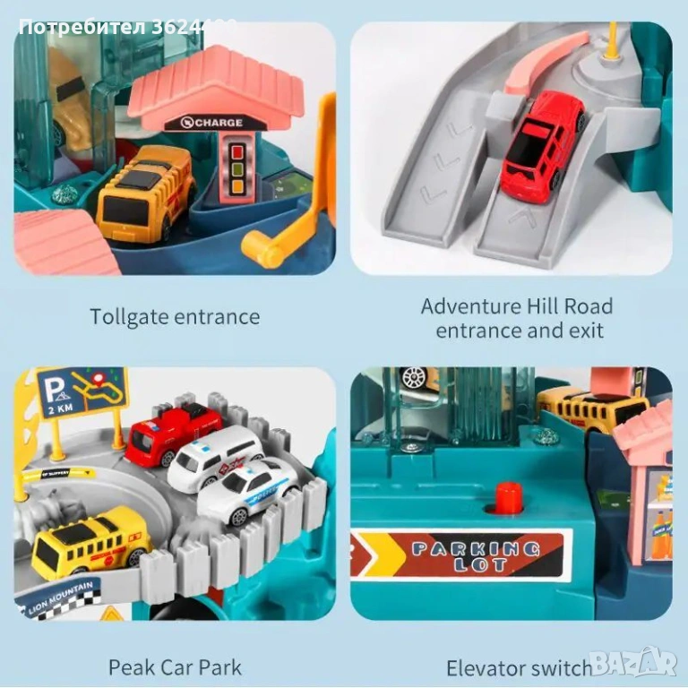 Този комплект паркинг насърчава ролевата игра и е подходящ за деца над 3 години. Включените 4 бр. колички и аксесоарите като пътни знаци и стикери гарантират часове забавление. Материалът е безопасна ABS пластмаса, а светлинните и звуковите ефекти допълват усещането за реализъм.