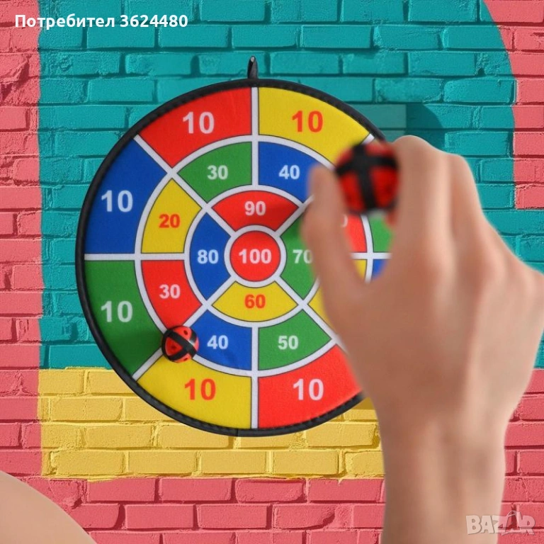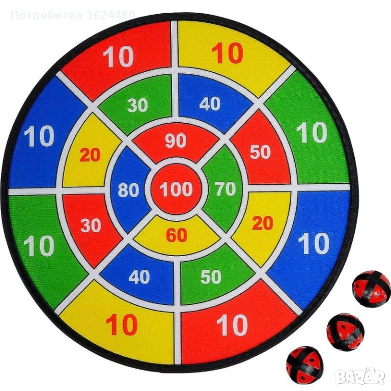 Подарете часове семейна игра с този детски дартс с лепящи топчета! Мишената е изработена от здрав плат и се предлага в два размера – компактен 34 см и внушителен 74 см. Дизайнът включва цветни сектори с ясни номерирани зони (от 10 до 100) за лесно точкуване и състезание. Този безопасен дартс комплект използва лепящи топчета вместо остри предмети, което го прави идеален за игра на закрито или открито. Сгъваемата мишена се закача бързо с помощта на халката и се прибира лесно в чантата за съхранение.