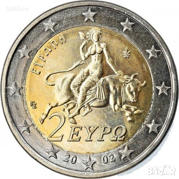 РЯДКО!!! 2 евро 2002 г. - Гърция, със S в долната звезда → Обява 53359571