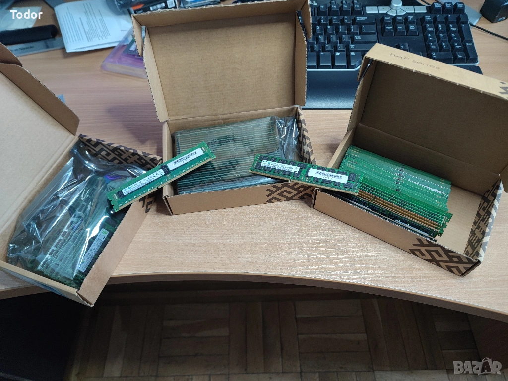 Продавам 75 броя 8GB сървърна памет тип PC3L-12800R и няколко бройки PC3L-10600R DIMM.