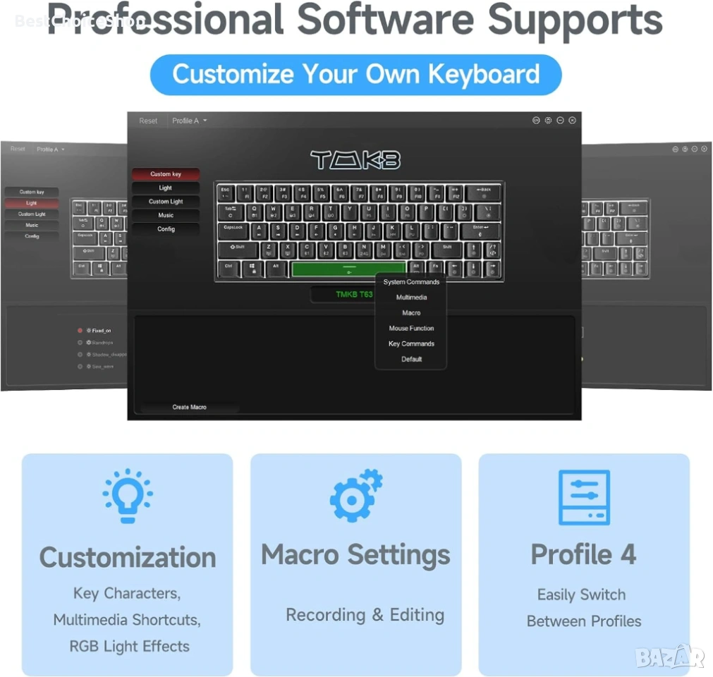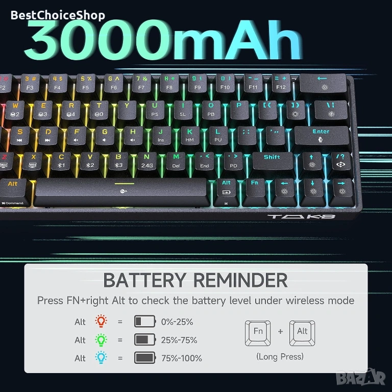 TAKB T63 е компактна механична клавиатура (60% формат), създадена за хора, които искат повече място на бюрото, по-бърза реакция и приятно усещане при писане и гейминг.