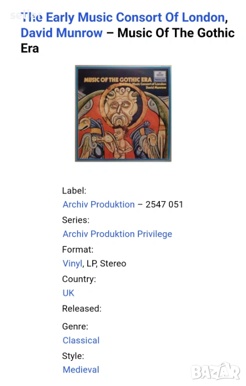 The Early Music Consort Of London, David Munrow ‎– Music Of The Gothic Era Издание 🇬🇧 UK Стил:Cl → Обява 53359869