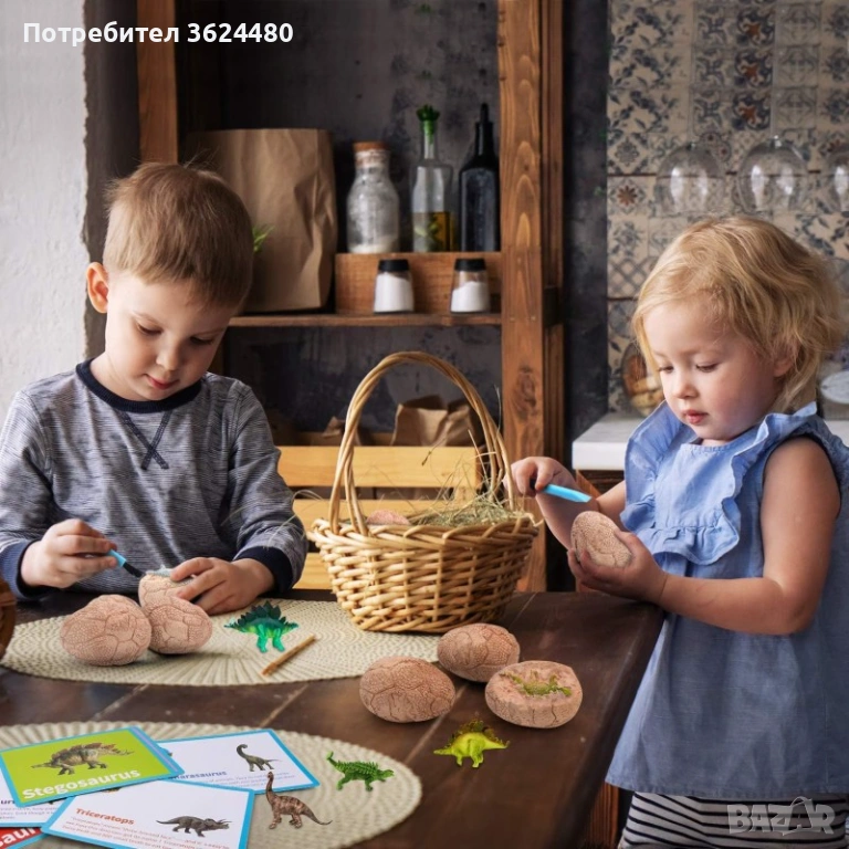 Подарете часове забавление и въображение с този археологически комплект с 12 динозавърски яйца! Този креативен комплект е перфектният подарък за дете над 6 години, което обича динозаврите и изненадите. Децата ще изпитат тръпката да бъдат истински палеонтолози, като използват предоставените инструменти за разкопки върху глинените яйца. Всяко яйце е уникално и крие своя собствена фигурка на динозавър, а информационните карти ще обогатят знанията им по темата археология.