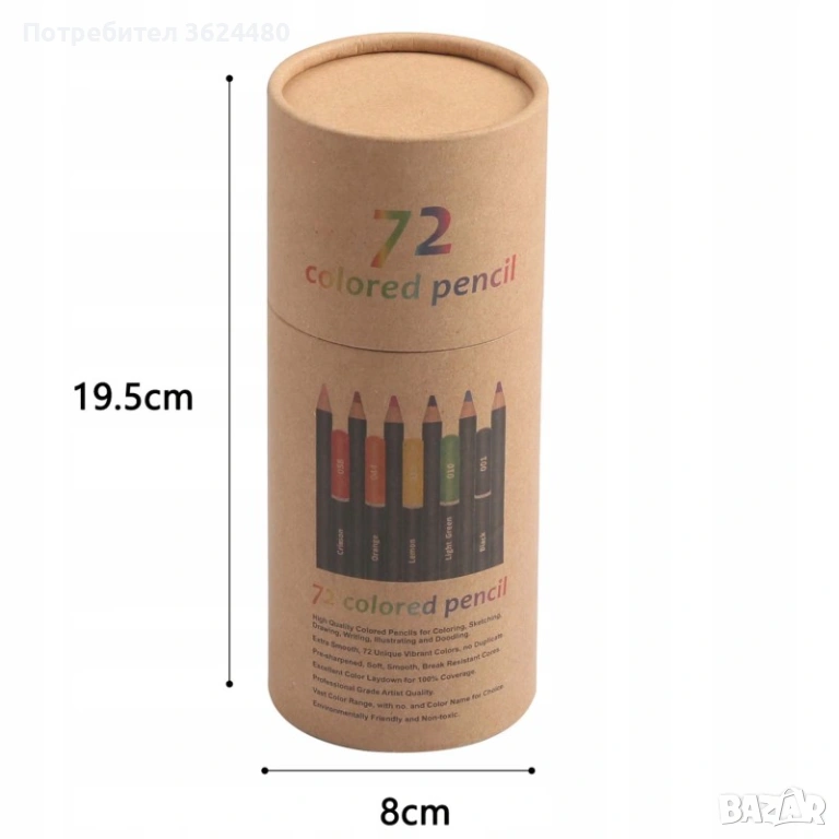 Потопете се в творчеството с комплекта цветни моливи Kalour от 72 уникални нюанса, създаден за рисуване скициране и оцветяване. Ядрото на тези професионални моливи е меко и изключително устойчиво на чупене, осигурявайки наситен цвят и гладко нанасяне. Корпусът им е кръгъл, изработен от висококачествено дърво, като всеки молив има цветно кодиран край за бързо разпознаване на нюанса. Комплектът включва и незаменим блендер молив за постигане на перфектно смесване на цветовете и плавни преходи. Всичко е организирано в здрав картонен тубус за лесно съхранение.