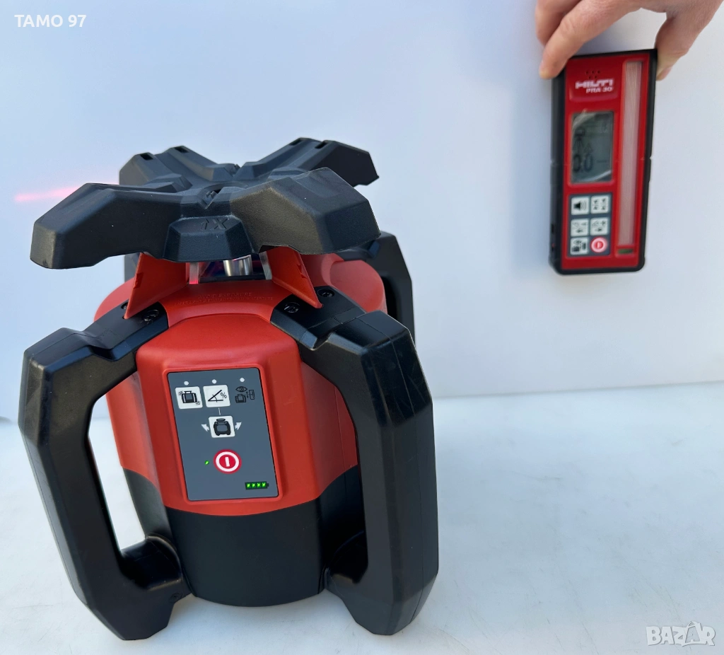 Продавам професионален ротационен лазер на Хилти като нов, както се вижда на снимките, още стоят предпазните найлони по дисплея на приемника, също така всичко функционира и работи без грешки, оригинално немско производство от 2023г. внос от Франция. Комплекта включва лазер PR 30-HVS А12, приемник PRA 30, една батерия 12V 30 с индикатор и зарядно c 4/12-50. Пращаме с опция преглед и тест с куриерска фирма еконт може и лично предаване за гр. Шумен.