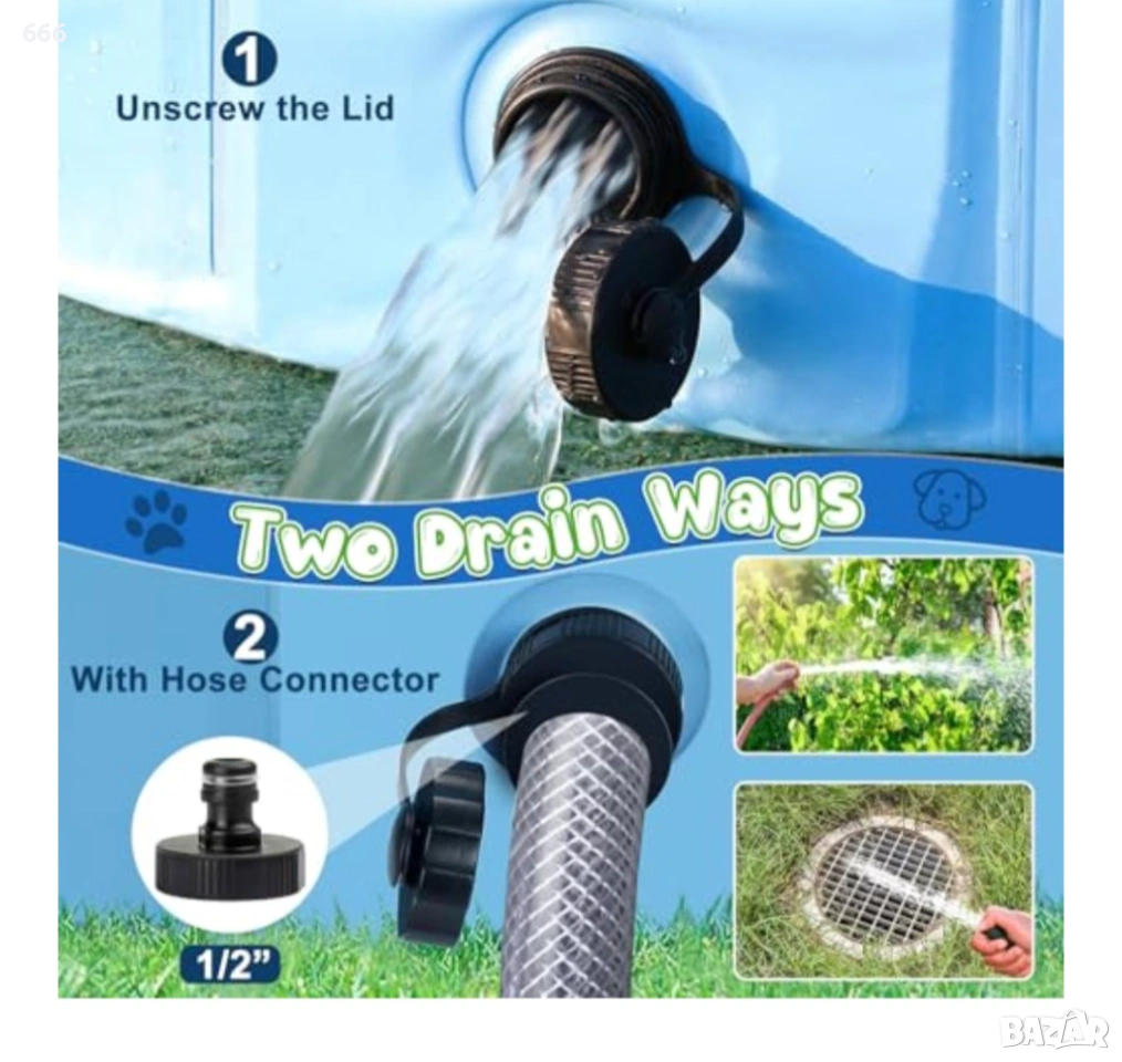 😄【2 режима на отводняване】: Пластмасовият басейн за кучета се предлага с дренажен клапан отстрани и допълнителен адаптер за маркуч 1/2". Можете лесно да източите водата, като развиете капака или свържете градински маркуч с включените адаптери за маркуч (маркучът за вода не е включен). Лесен за почистване и смяна на вода при ежедневна употреба. Чудесен за кучета и деца, които прекарват прохладното лято на открито.