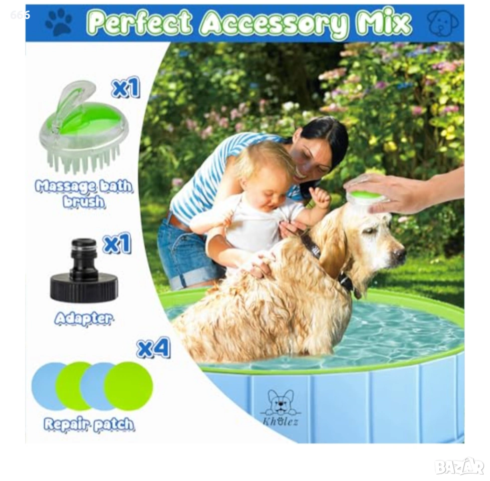 😄【Перфектен комплект аксесоари】: Басейнът за кучета се предлага с допълнителна четка за масаж на домашни любимци, 4 накрайника за поправка и адаптер за маркуч 1/2". Четката за измиване на SPA за домашни любимци с неплъзгаща се дръжка е изработена от меки силиконови влакна, за премахване на козината, разресване, масажиране, ексфолиране и релаксация. Накрайниците за поправка са за поправяне на драскотини от ноктите на вашия домашен любимец. Адаптерът за маркуч 1/2" ви позволява да рециклирате използваната вода от басейна, след като я свържете към водопровод.