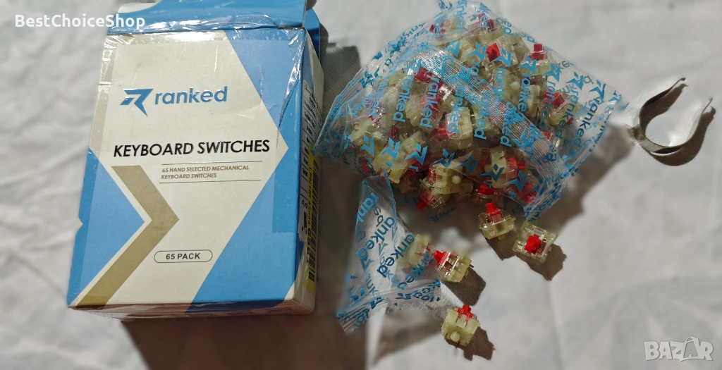 Комплект 65 броя механични суичове Ranked Red – линейни, тихи и плавни. Подходящи за подмяна или ъпгрейд на механична клавиатура с hot-swap или за запояване.