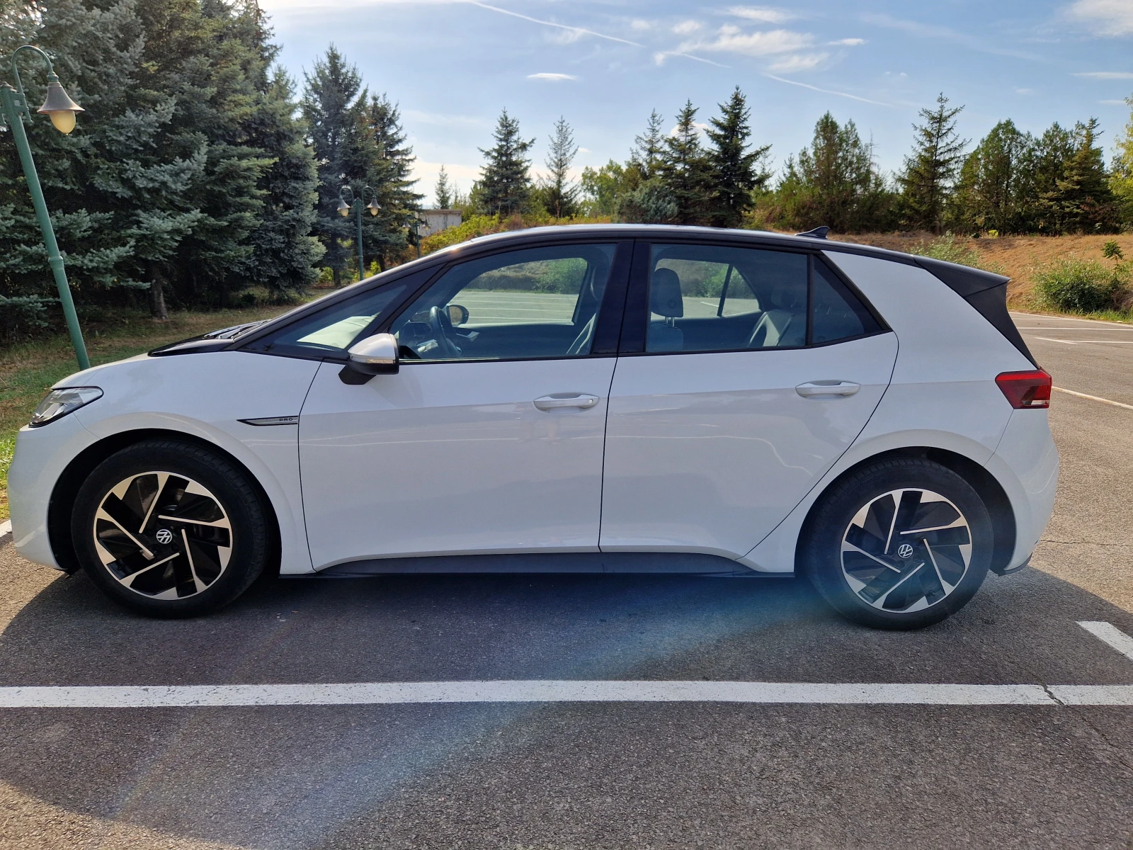 Изключително запазена, не само на думи. Личен автомобил- пазен и безкомпромисно обслужван. Закупена от официално представителство на VW в Германия през 2024 г. Имам много подробен репорт за състоянието на автомобила от закупуването. Рама за справка: WVWZZZE1ZMP043810 Обслужвана само във VW и в България- всичко може да се проследи. Следващо обслужване след 500 дни. Пълна сервизна история. Всичко е доказуемо с документи. Батерията е в перфектно състояния- 99% от зарежданията в последните 40 000 км. са на домашна станция. Батерията е в гаранция до 2029 г. или до 160 000 км. Софтуера версия 3. 8. Колата има We connect Plus и We connect до м. април 2026 г. - дистанционно- палене, контрол на климатроник, зареждане, следене на локация на автомобила, следене на системите на автомобила и др. Годишна винетка (07. 04. 2026 23: 59: 59), пълно автокаско- изцяло платено (05. 04. 2026), Гражданска отговорност (05. 04. 2026), ГТП (01. 04. 2026). Има втори комплект летни джанти и гуми Good year, Двата комплекта имат разлика в цвета- черен антрацит и графитено сиво. Към колата има кабел за зареждане и оригинална неизползвана мобилна зарядна станция- включени в цената, оригинална аптечка, крик, инструменти и всичко. За подробности ви очаквам на посочения телефон.