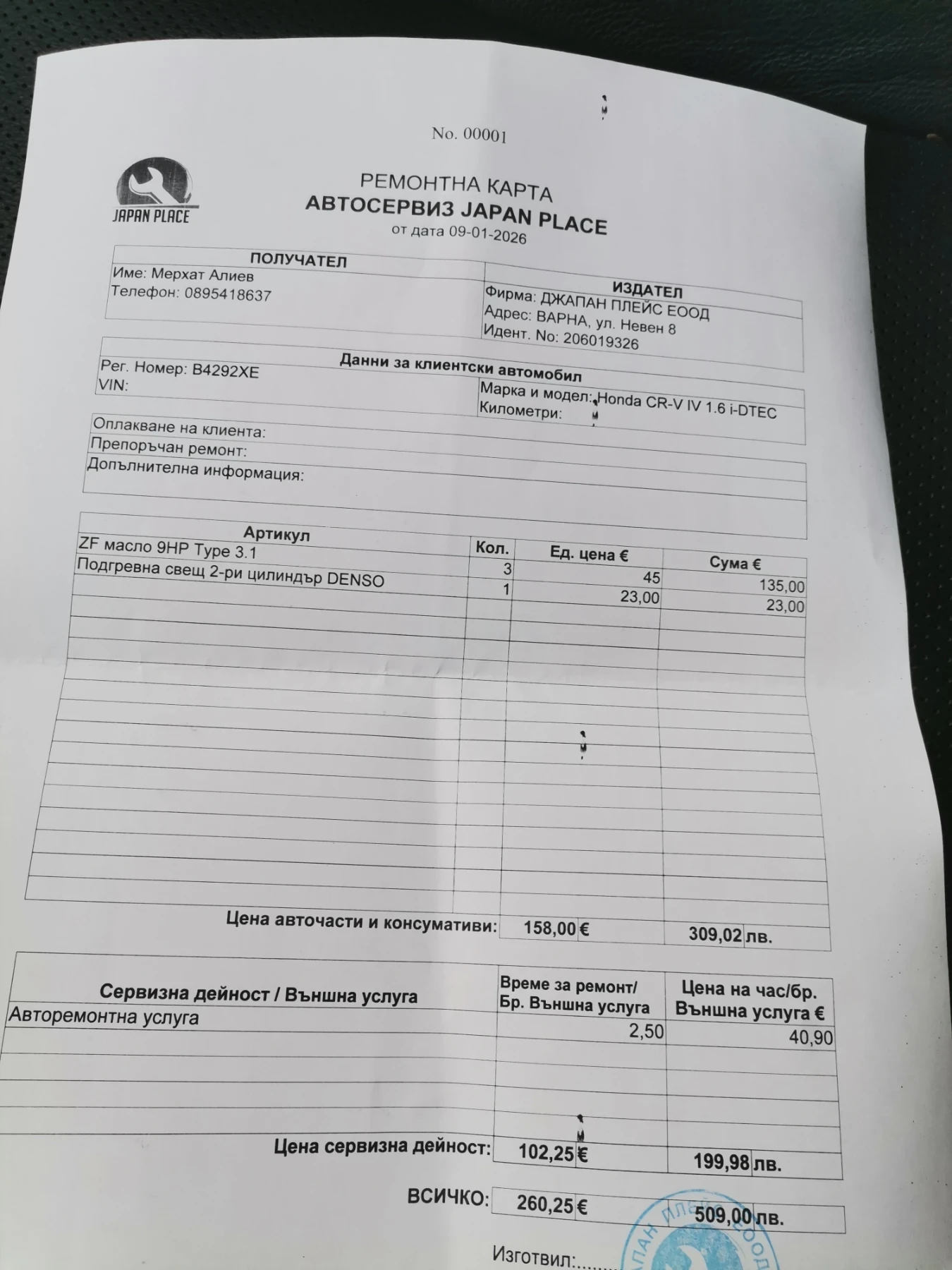 - • Сервизна книжка