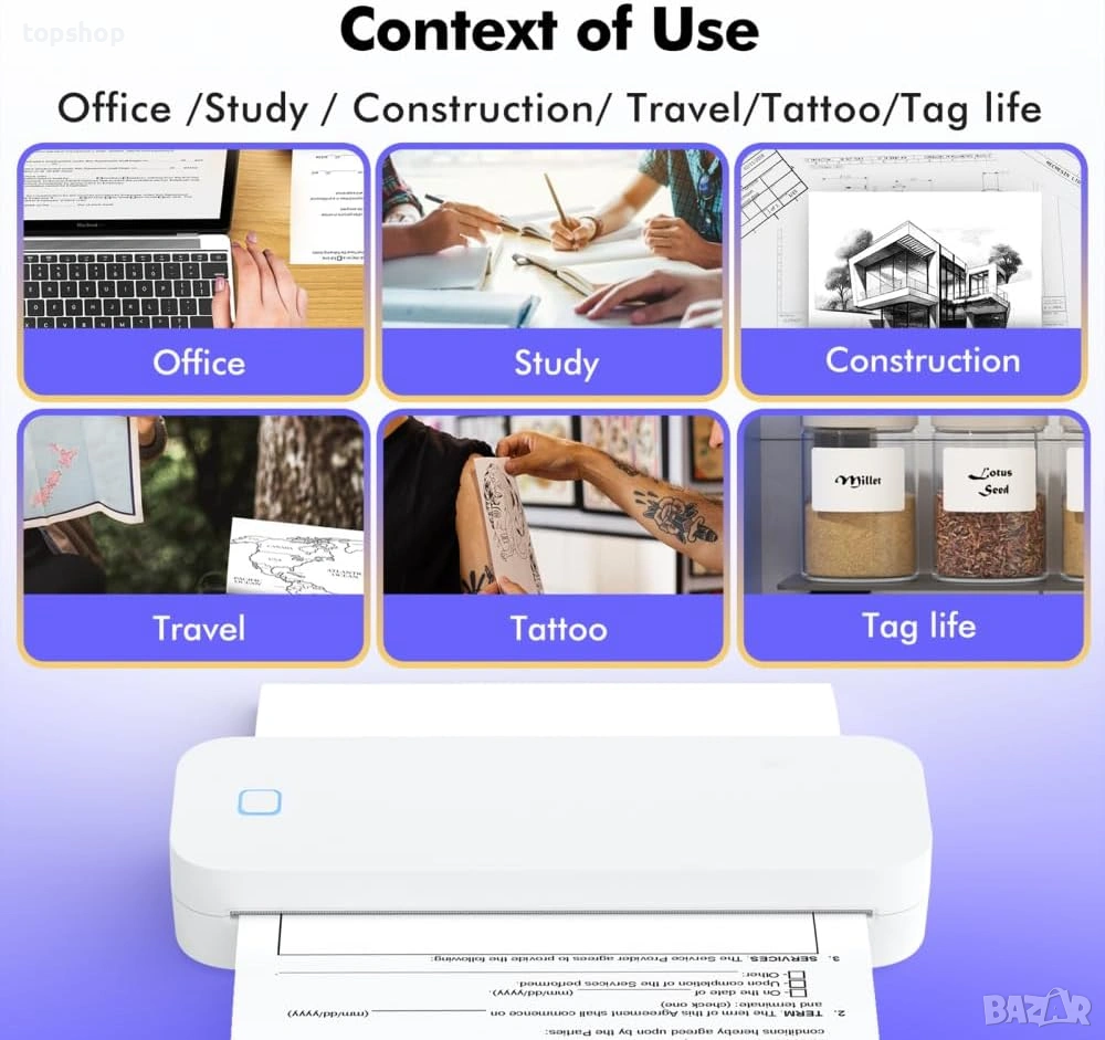 Силна батерия: 2600mAh – зарежда се бързо за 1.5 часа и печата над 90 листа с едно зареждане. 30 дни режим на готовност.